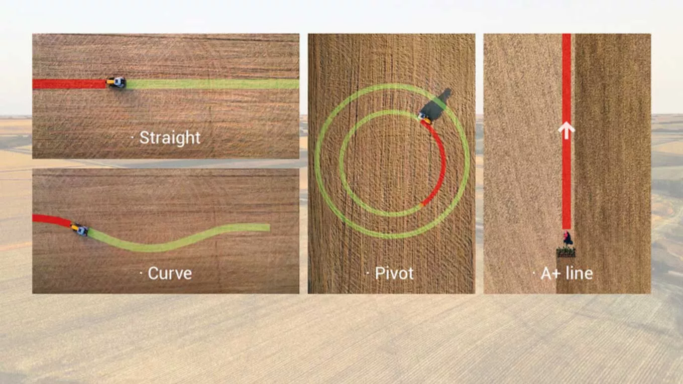 Çeşitli alan şekilleri ve operasyon ihtiyaçları için düz çizgi, eğri, A+ çizgi ve pivot modları mevcuttur.