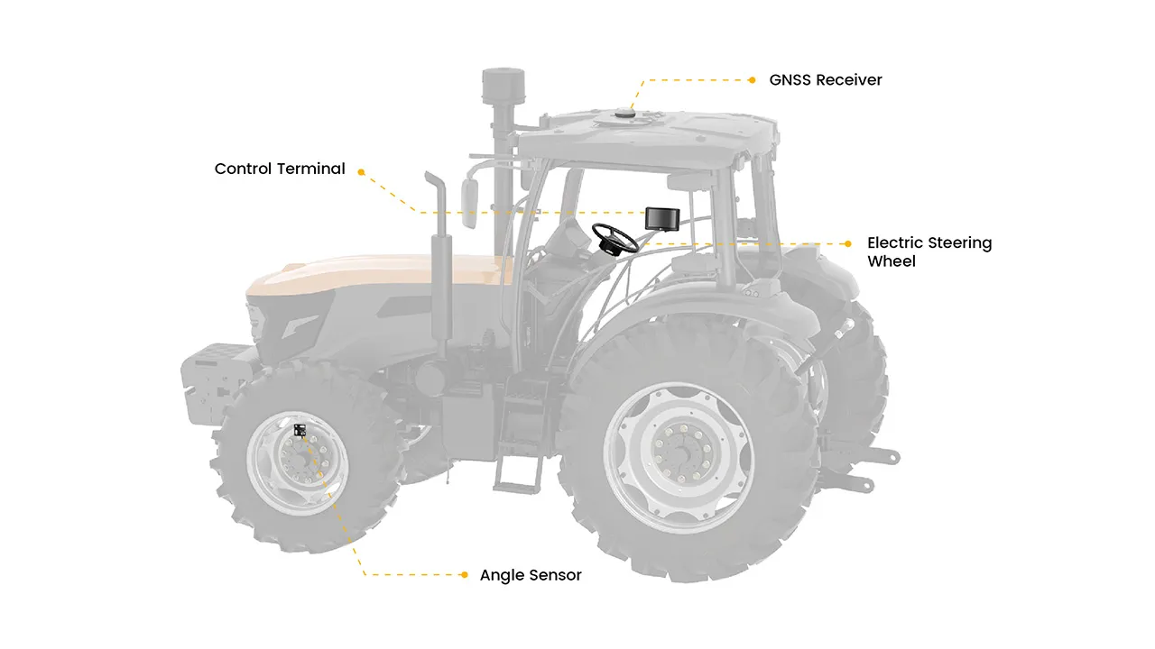 FJDynamics AT2 Otomatik Dümenleme Sistemi , traktörlerin 2,5 cm’den daha hassas bir şekilde düz hatlar, eğriler veya eş merkezli daireler boyunca ilerlemesini sağlamak için GNSS ve RTK teknolojilerini kullanır. Sabit RTK istasyonlarına bağlanarak çalışır.